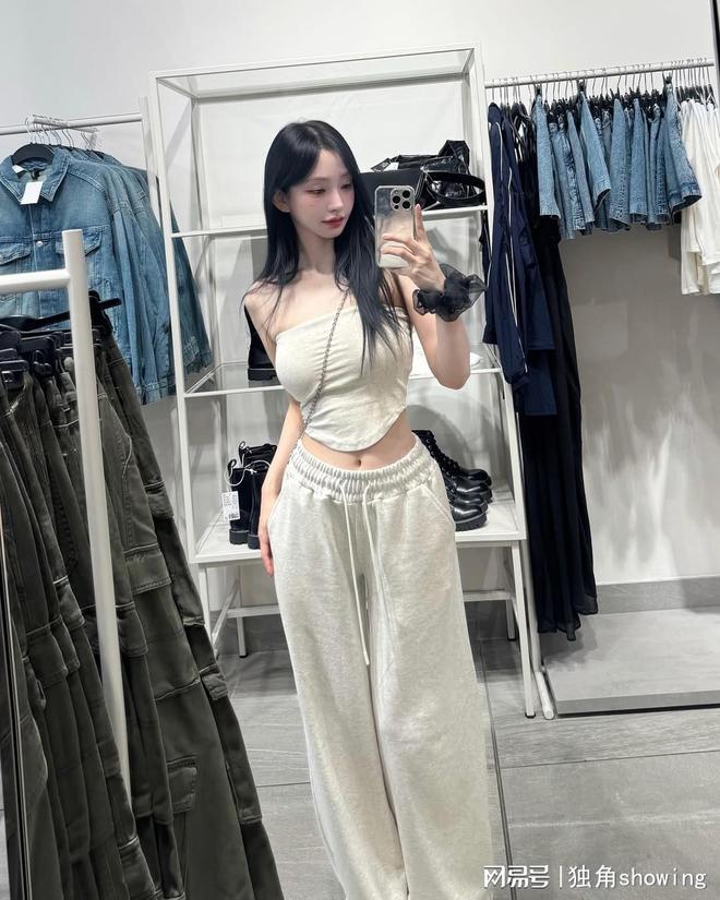 抹胸作为一种简单但不失性感的单品,在秋天的穿搭中占有重要位置。它不仅可以展示出优美的肩颈线条,还能够带来一种清新俏皮的感觉。尤其是在阳光明媚的秋日,抹胸可以很好地与其他单品搭配,塑造出既时尚又舒适的日常穿搭风格。而卫裤作为一种休闲、舒适的下装,近年来越来越受到人们的青睐。它宽松的版型和柔软的面料,不仅带来了极高的舒适感,还能够很好地衬托出身形的线条,让你看起来轻松随性,同时不失时尚感。