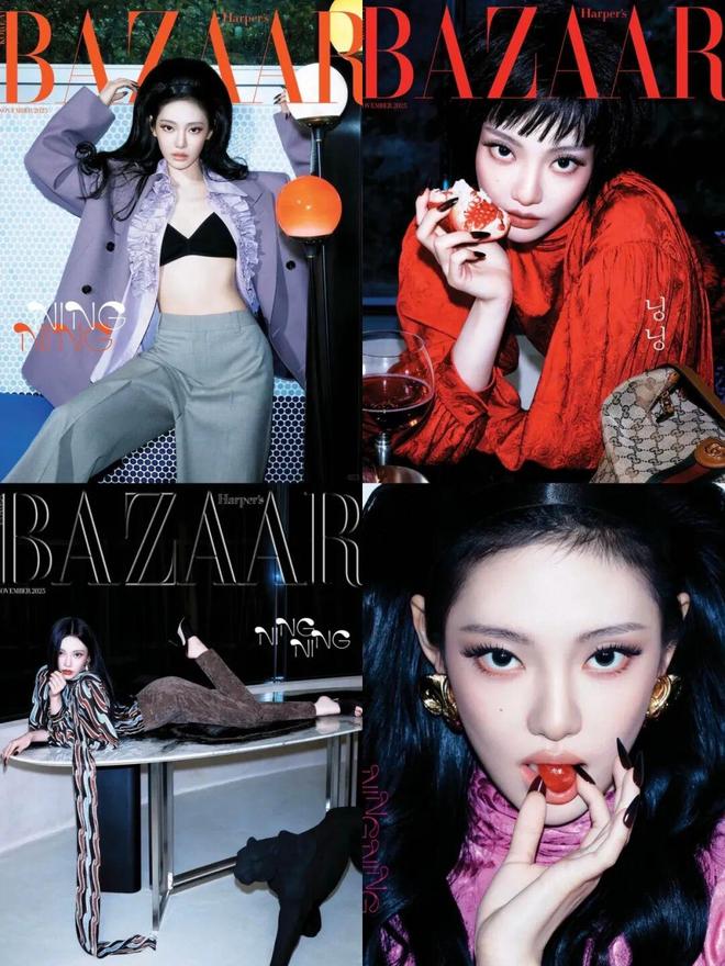 在最近的韩国芭莎11月杂志封面中,宁宁也身穿Gucci 2026早春系列超季礼服亮相,看来也是离正式合作不远了。